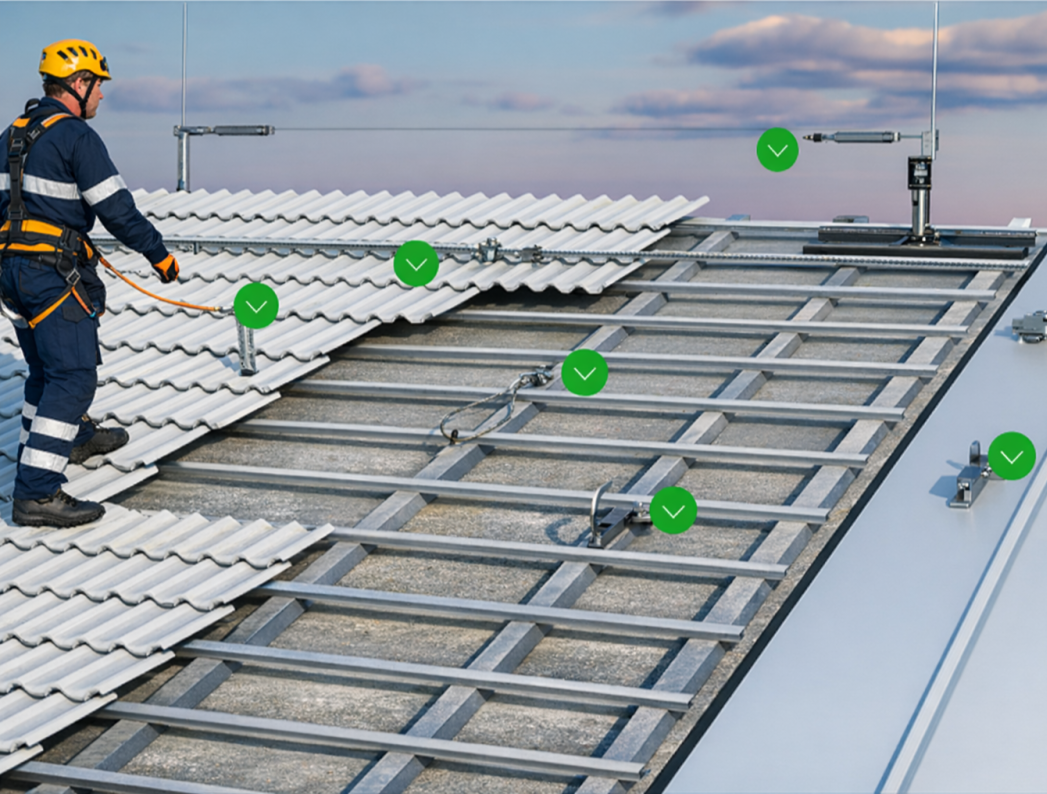 Installation de dispositifs de sécurité (lignes de vie, points d’ancrage, accès) conformes aux normes en vigueur.